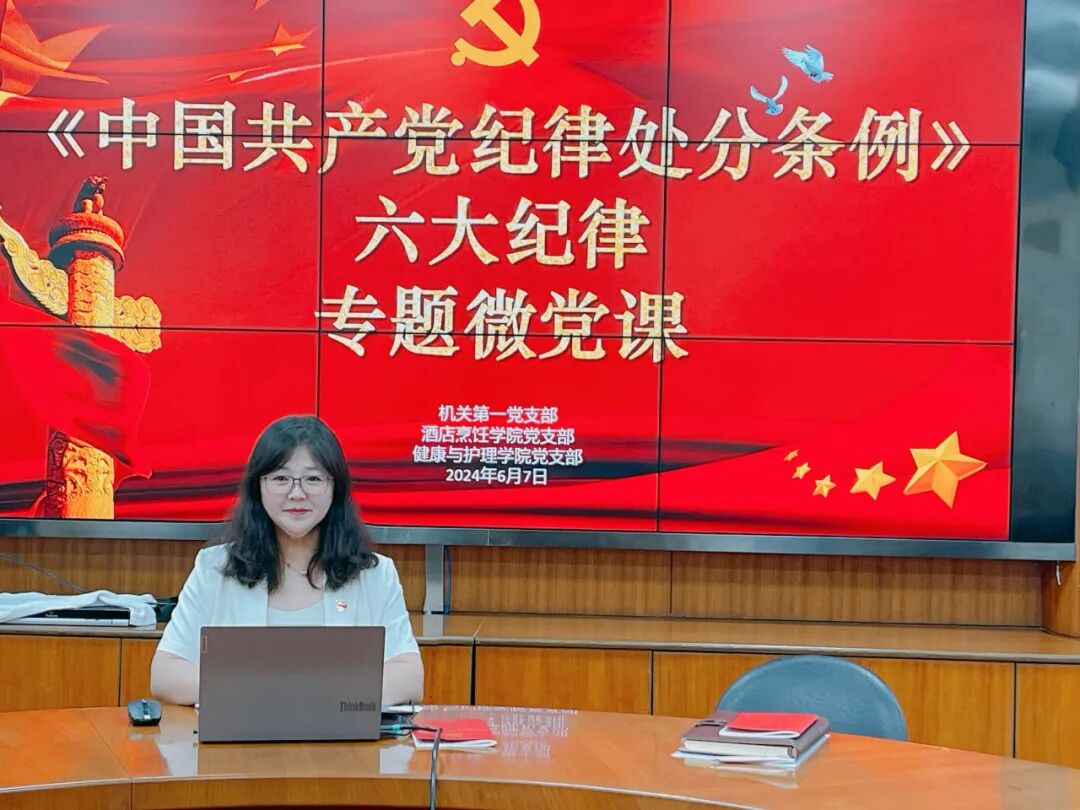 艺术设计学院党支部书记仇蓓丽围绕“增强纪律意识,提高党性修养”。组织学院全体党员开展微党课分享交流会,她表示一是拿稳党纪“戒尺”,约束自身行为。二是贯彻纪律处分条例,把遵规守纪刻在心中。三是坚持学习党纪条例,推动纪律教育常态化。