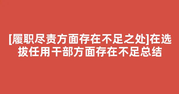 [履职尽责方面存在不足之处]在选拔任用干部方面存在不足总结参考范文如下: