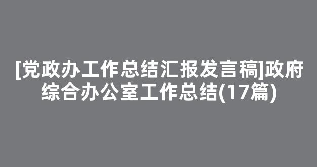 [党政办工作总结汇报发言稿]政府综合办公室工作总结(17篇)参考范文如下: