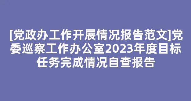 [党政办工作开展情况报告范文]党委巡察工作办公室2023年度目标任务完成情况自查报告参考范文如下: