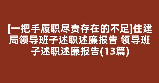 [一把手履职尽责存在的不足]住建局领导班子述职述廉报告 领导班子述职述廉报告(13篇)参考范文如下: