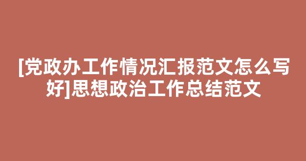 [党政办工作情况汇报范文怎么写好]思想政治工作总结范文参考范文如下: