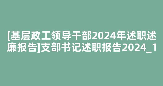 [基层政工领导干部2024年述职述廉报告]支部书记述职报告2024_1参考范文如下:
