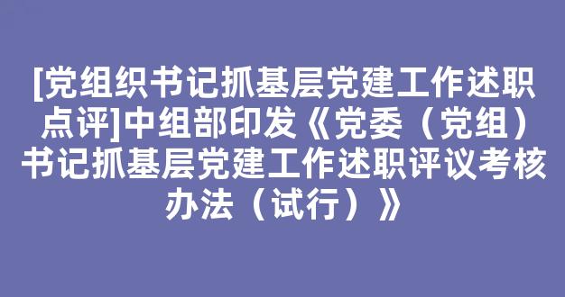 [党组织书记抓基层党建工作述职点评]中组部印发《党委(党组)书记抓基层党建工作述职评议考核办法(试行)》参考范文如下: