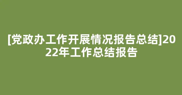 同时对于如何写好[党政办工作开展情况报告总结]2022年工作总结报告文章,在文章结尾,我们分享了一些对于文章写作的一些心得体会,供大家讨论学习。 [党政办工作开展情况报告总结]2022年工作总结报告参考范文如下: