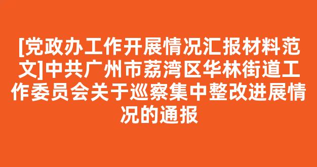 [党政办工作开展情况汇报材料范文]中共广州市荔湾区华林街道工作委员会关于巡察集中整改进展情况的通报参考范文如下: