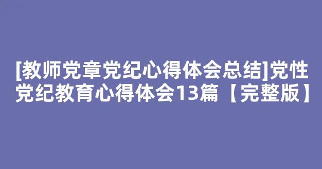 [教师党章党纪心得体会总结]党性党纪教育心得体会13篇【完整版】参考范文如下: