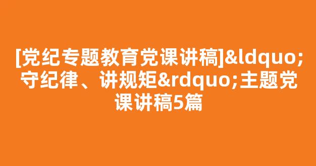 [党纪专题教育党课讲稿]“守纪律、讲规矩”主题党课讲稿5篇参考范文如下:
