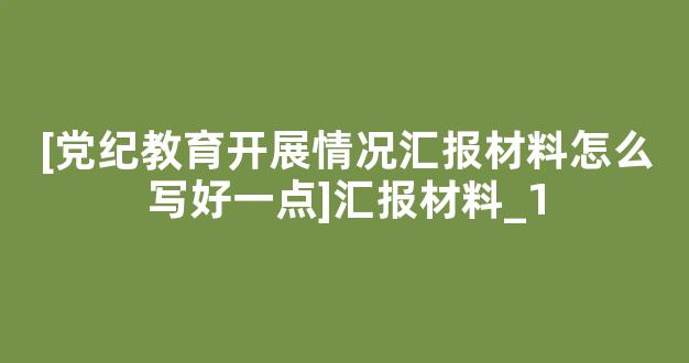 【经验借鉴】如何写一篇高质量的[党纪教育开展情况汇报材料怎么写好一点]汇报材料_1?[党纪教育开展情况汇报材料怎么写好一点]汇报材料_1文章的写作要遵循一些写作步骤,如何写好一篇[党纪教育开展情况汇报材料怎么写好一点]汇报材料_1我们可以从以下几个角度来思考