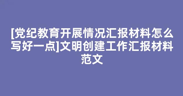 1、明确[党纪教育开展情况汇报材料怎么写好一点]文明创建工作汇报材料范文主题
