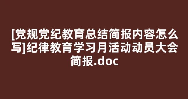 [党规党纪教育总结简报内容怎么写]纪律教育学习月活动动员大会简报.doc参考范文如下: