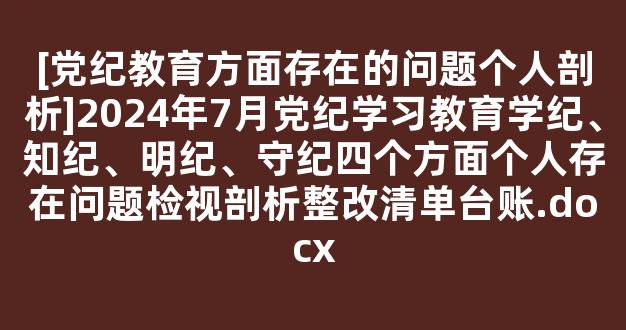 1、明确[党纪教育方面存在的问题个人剖析]2024年7月党纪学习教育学纪、知纪、明纪、守纪四个方面个人存在问题检视剖析整改清单台账.docx主题