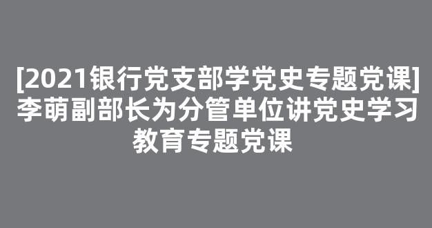 1、明确[2021银行党支部学党史专题党课]李萌副部长为分管单位讲党史学习教育专题党课 主题