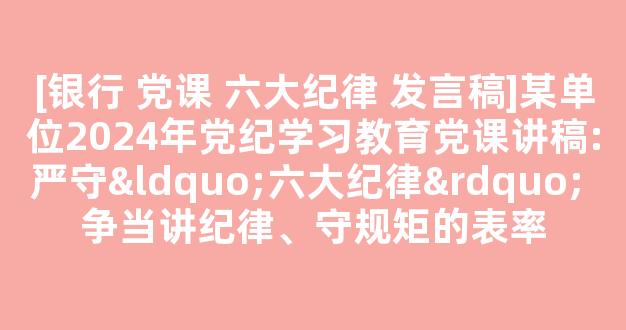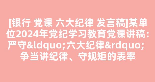 【经验借鉴】如何写一篇高质量的[银行 党课 六大纪律 发言稿]某单位2024年党纪学习教育党课讲稿:严守“六大纪律” 争当讲纪律、守规矩的表率?