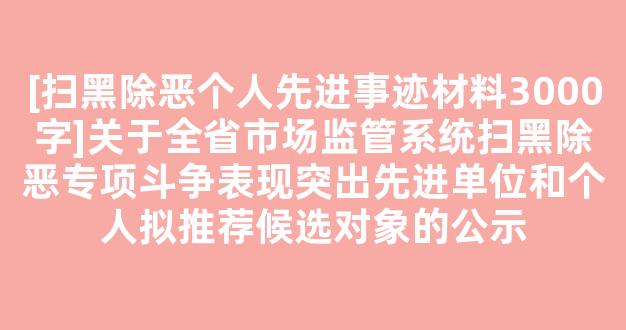 【经验借鉴】如何写一篇高质量的[扫黑除恶个人先进事迹材料3000字]关于全省市场监管系统扫黑除恶专项斗争表现突出先进单位和个人拟推荐候选对象的公示?