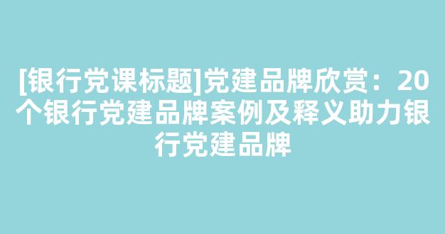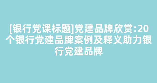 [银行党课标题]党建品牌欣赏:20个银行党建品牌案例及释义助力银行党建品牌参考范文如下: