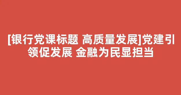 [银行党课标题 高质量发展]党建引领促发展 金融为民显担当参考范文如下: