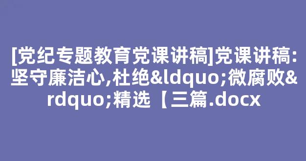 [党纪专题教育党课讲稿]党课讲稿:坚守廉洁心,杜绝“微腐败”精选【三篇.docx参考范文如下: