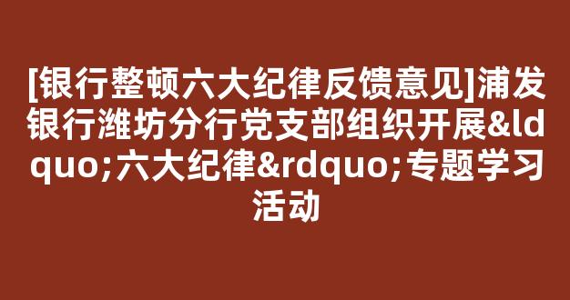 [银行整顿六大纪律反馈意见]浦发银行潍坊分行党支部组织开展“六大纪律”专题学习活动参考范文如下: