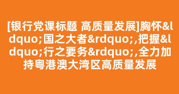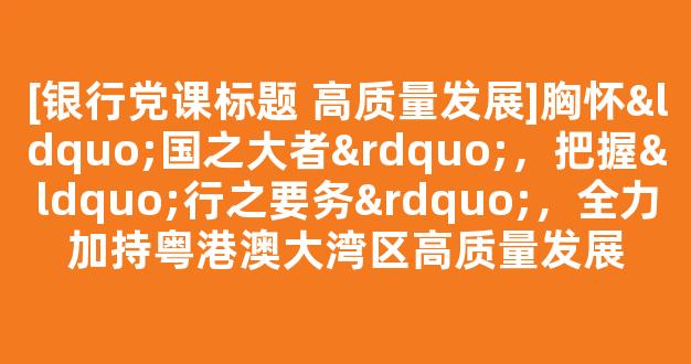 [银行党课标题 高质量发展]胸怀“国之大者”,把握“行之要务”,全力加持粤港澳大湾区高质量发展参考范文如下: