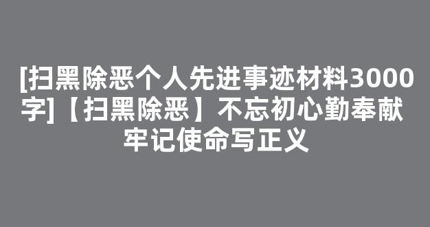 [扫黑除恶个人先进事迹材料3000字]【扫黑除恶】不忘初心勤奉献 牢记使命写正义参考范文如下: