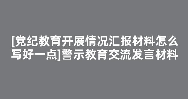 [党纪教育开展情况汇报材料怎么写好一点]警示教育交流发言材料参考范文如下:
