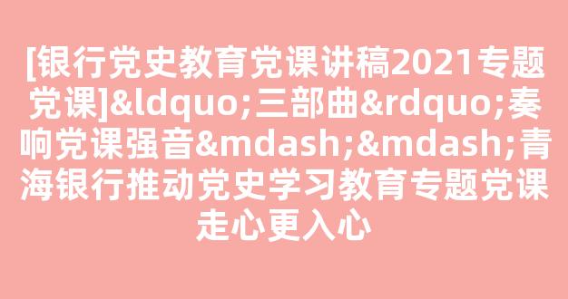 1、明确[银行党史教育党课讲稿2021专题党课]“三部曲”奏响党课强音——青海银行推动党史学习教育专题党课走心更入心主题