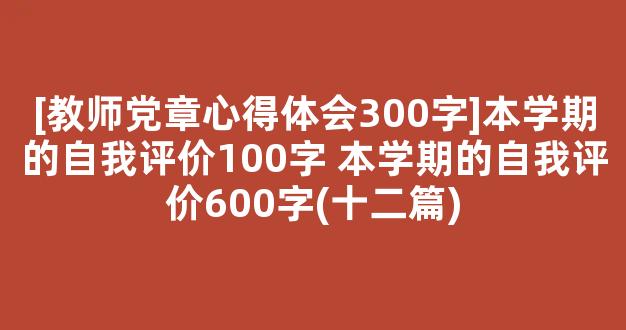 [教师党章心得体会300字]本学期的自我评价100字 本学期的自我评价600字(十二篇)参考范文如下: