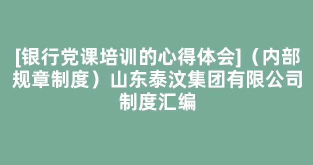 [银行党课培训的心得体会](内部规章制度)山东泰汶集团有限公司制度汇编怎么写,以下是御用文案网为大家整理的[银行党课培训的心得体会](内部规章制度)山东泰汶集团有限公司制度汇编参考范文,大家可以学习参考,如果你需要代写各类文案材料可以直接联系我们,电话微信同号:13258028938
