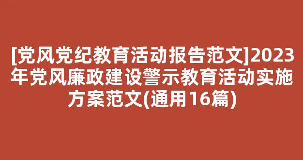 【经验借鉴】如何写一篇高质量的[党风党纪教育活动报告范文]2023年党风廉政建设警示教育活动实施方案范文(通用16篇)?