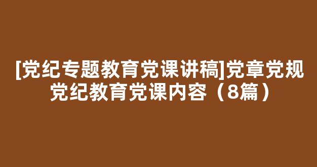 [党纪专题教育党课讲稿]党章党规党纪教育党课内容(8篇)文章的写作要遵循一些写作步骤,如何写好一篇[党纪专题教育党课讲稿]党章党规党纪教育党课内容(8篇)我们可以从以下几个角度来思考