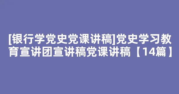 [银行学党史党课讲稿]党史学习教育宣讲团宣讲稿党课讲稿【14篇】参考范文如下: