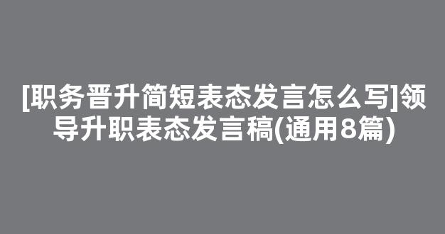 【经验借鉴】如何写一篇高质量的[职务晋升简短表态发言怎么写]领导升职表态发言稿(通用8篇)?[职务晋升简短表态发言怎么写]领导升职表态发言稿(通用8篇)文章的写作要遵循一些写作步骤,如何写好一篇[职务晋升简短表态发言怎么写]领导升职表态发言稿(通用8篇)我们可以从以下几个角度来思考