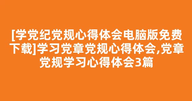 [学党纪党规心得体会电脑版免费下载]学习党章党规心得体会,党章党规学习心得体会3篇参考范文如下: