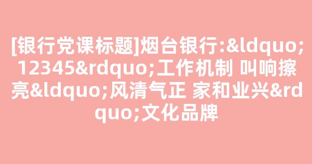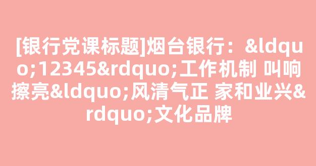1、明确[银行党课标题]烟台银行:“12345”工作机制 叫响擦亮“风清气正 家和业兴”文化品牌主题