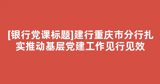 [银行党课标题]建行重庆市分行扎实推动基层党建工作见行见效参考范文如下: