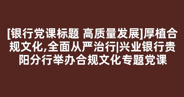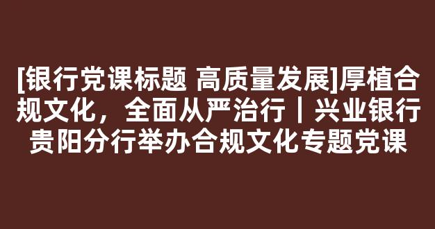 【经验借鉴】如何写一篇高质量的[银行党课标题 高质量发展]厚植合规文化,全面从严治行|兴业银行贵阳分行举办合规文化专题党课?