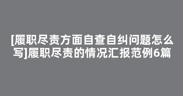 [履职尽责方面自查自纠问题怎么写]履职尽责的情况汇报范例6篇参考范文如下: