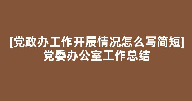 [党政办工作开展情况怎么写简短]党委办公室工作总结参考范文如下:
