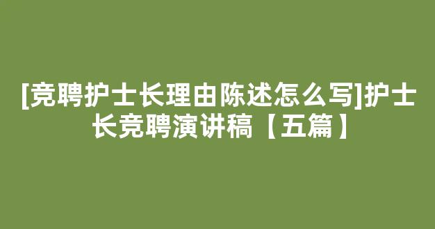 [竞聘护士长理由陈述怎么写]护士长竞聘演讲稿【五篇】参考范文如下: