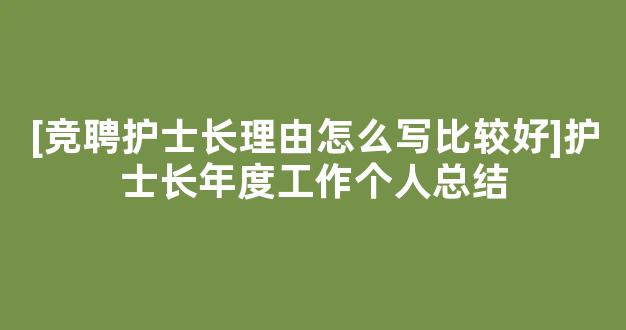 [竞聘护士长理由怎么写比较好]护士长年度工作个人总结参考范文如下: