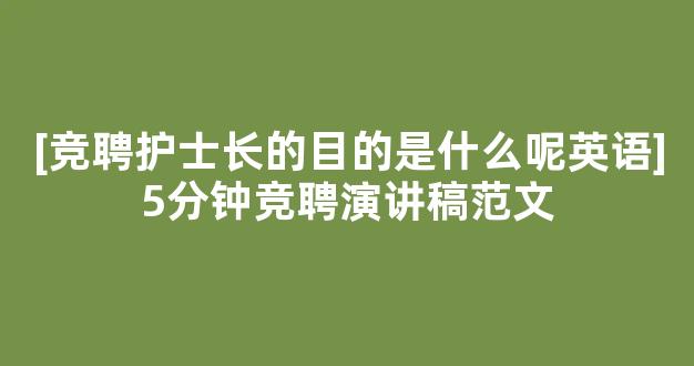[竞聘护士长的目的是什么呢英语]5分钟竞聘演讲稿范文参考范文如下: