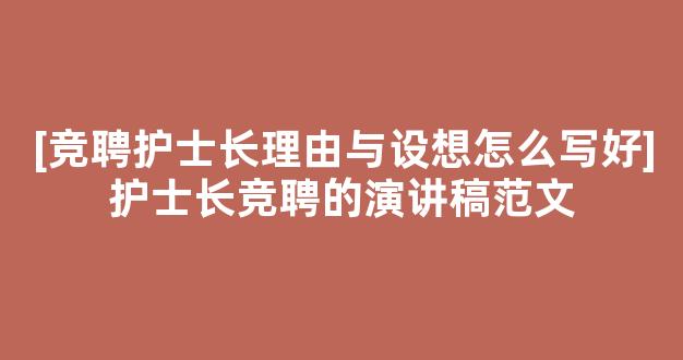 [竞聘护士长理由与设想怎么写好]护士长竞聘的演讲稿范文参考范文如下: