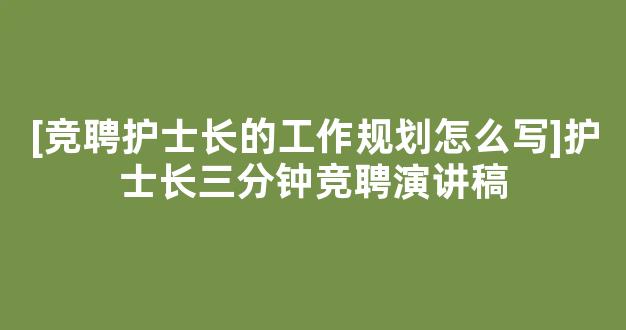 [竞聘护士长的工作规划怎么写]护士长三分钟竞聘演讲稿参考范文如下: