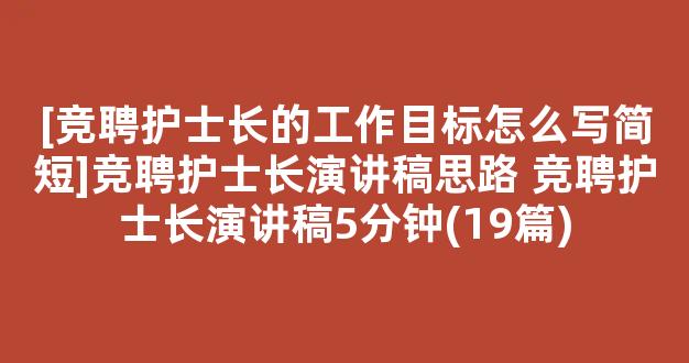 同时对于如何写好[竞聘护士长的工作目标怎么写简短]竞聘护士长演讲稿思路 竞聘护士长演讲稿5分钟(19篇)文章,在文章结尾,我们分享了一些对于文章写作的一些心得体会,供大家讨论学习。 [竞聘护士长的工作目标怎么写简短]竞聘护士长演讲稿思路 竞聘护士长演讲稿5分钟(19篇)参考范文如下:
