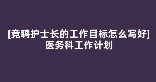 [竞聘护士长的工作目标怎么写好]医务科工作计划参考范文如下: