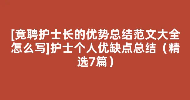 [竞聘护士长的优势总结范文大全怎么写]护士个人优缺点总结(精选7篇)参考范文如下: