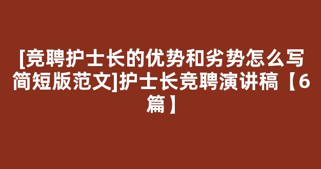 [竞聘护士长的优势和劣势怎么写简短版范文]护士长竞聘演讲稿【6篇】参考范文如下: