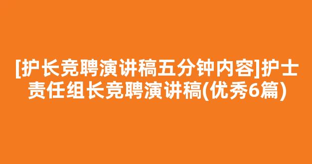 [护长竞聘演讲稿五分钟内容]护士责任组长竞聘演讲稿(优秀6篇)参考范文如下: