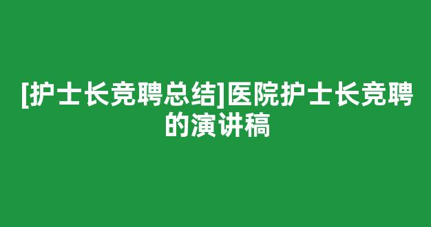 [护士长竞聘总结]医院护士长竞聘的演讲稿参考范文如下:
